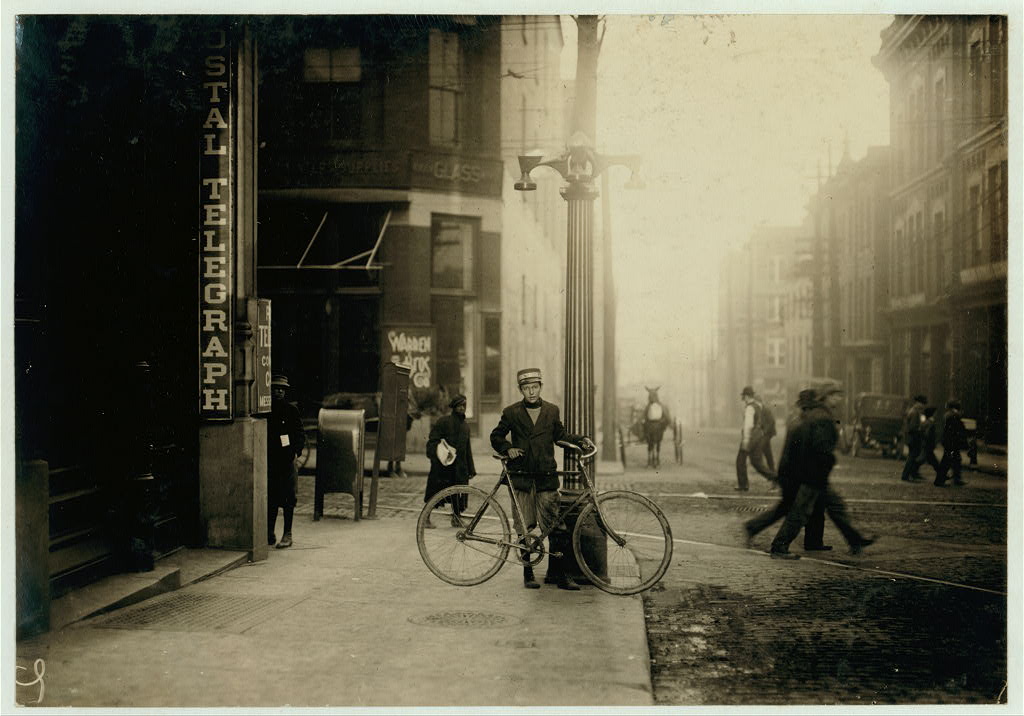 Photo of bicycle messenger George Christopher by Lewis Wickes Hine, 1910.  Lot 7480, v. 2, no. 1743 [P&P].  Library of Congress Prints and Photographs Division, Washington, D.C.