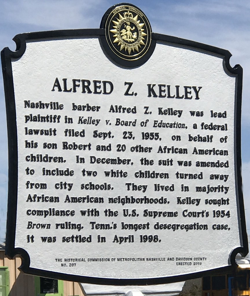 Metro Historical Commission marker for Alfred Z. Kelley, erected 2019