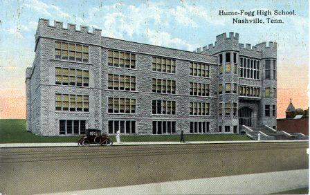 The Hume School, Nashville’s first public school, opened in 1855 for grades 1-12. In 1874 the high school students moved to the Fogg High School, newly built on an adjoining lot fronting Broad Street. In 1912 the two schools merged and moved into this Gothic Revival building designed by architects William Ittner and Robert Sharp.
